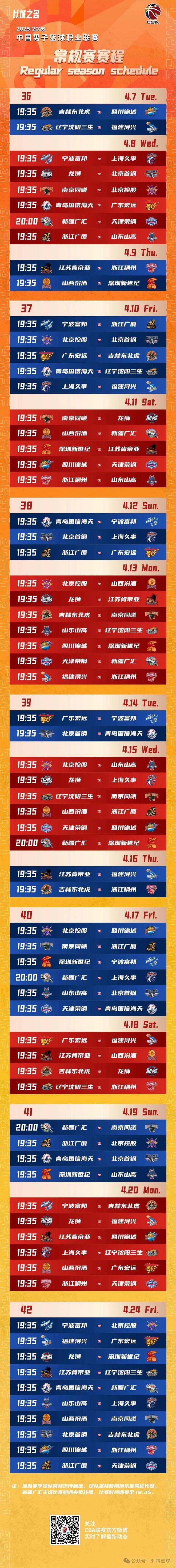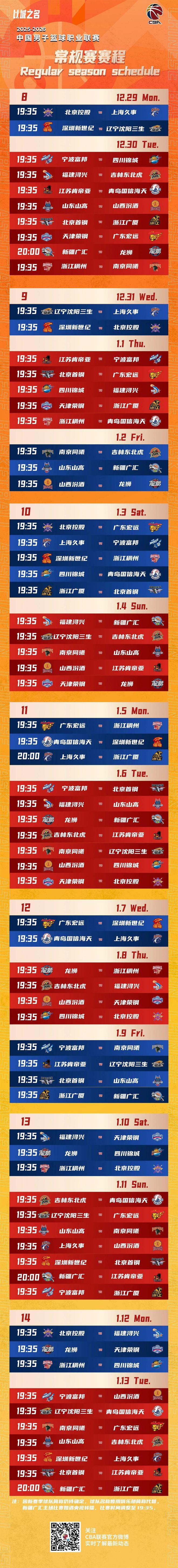 新鲜滚热辣!25-26赛季CBA常规赛赛程出炉!
